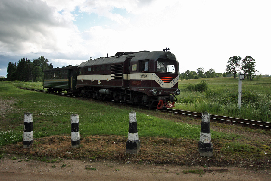 Rong saabub Umernieki peatusesse (Gulbene - Aluksne kitsarööpaline raudtee, Läti)